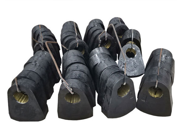 破碎機錘頭,準(zhǔn)確的定義應(yīng)該是錘式破碎機錘頭,錘頭是錘式破碎機核心零部件之一,排列在破碎機轉(zhuǎn)子的錘軸上,錘頭在破碎機高速運轉(zhuǎn)時直接打擊物料,終破碎成合適的物料粒度。頭部需要良好的耐磨性而柄部又需要足夠韌性,通常用合金鋼、高錳鋼、鑄鋼加高鉻鑄鐵雙金屬復(fù)合等材料用鍛造或鑄造方法一次成型,配上相應(yīng)的熱處理工藝就比較經(jīng)濟一點。